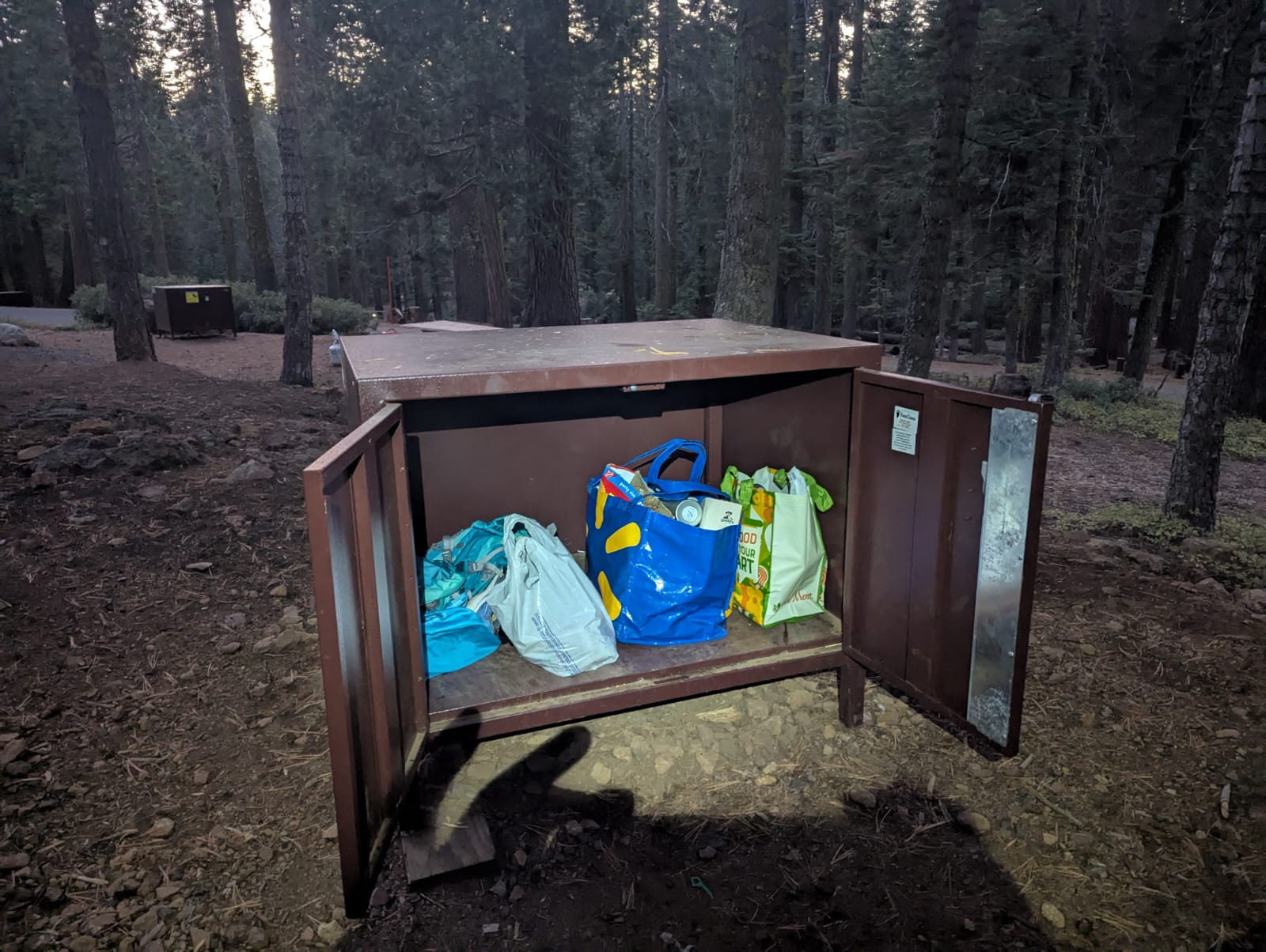 Hey, wir sind glücklich auf unserem Campingplatz im Yosemite Nationalpark angekommen. Es ist grandios hier. Fotos vom Park folgen. Vorerst müssen wir sämtliche Essensvorräte, Kosmetika inkl. Zahnpasta im bärensicheren Locker verstauen. Diesmal benutzen wir den Locker wirklich… denn hier hat es neben Schwarzbären auch grosse Grizzlys, mit denen nicht zu spassen ist. Wir haben jedoch extra auf einem etwas grösseren Camping mit Toiletten und fliessend Wasser (nur kalt) reserviert. Er war übrigens jetzt bei unserer Ankunft ausgebucht! Zuerst wollten wir auf einen kleineren, etwas romantischeren und weniger belebten Platz buchen, auf dem es jedoch nur ein Plumpsklo und kein Trinkwasser gegeben hätte, bloss ein Bach, um sich zu waschen. Ohne Bären hätten wir uns auf das Abenteuer eingelasen. So aber haben wir uns für den belebteren entschieden. Auch her ist sehr schön und familiär. (Es hat Kinder, Hunde etc. also die Bären würden wohl zuerst auf diese losgehen ;-)…